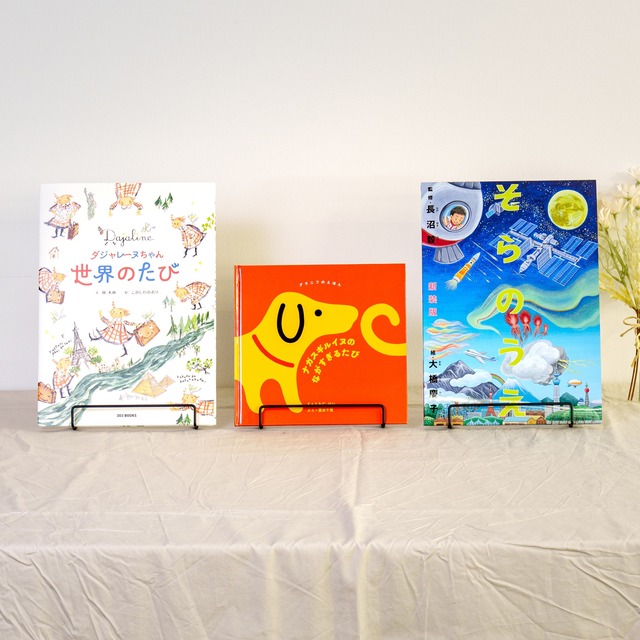 【セット内容】※サイン本はご注文いただけません。 ●『ダジャレーヌちゃん 世界のたび』 【特典あり】ダジャーヌちゃん特製クリアファイル 文・林木林 絵・こがしわかおり https://wholesale303.base.shop/items/112809633 ダジャレーヌちゃんは、だじゃれとおしゃれが大好きな女の子。空飛ぶトランクのトラさんと、なかよしの小鳥のコトリンといっしょに、世界の国ぐにをめぐりまアース! 世界の国ぐにを学べるだけでなく、声に出して読んでも楽しく、読み聞かせでも盛り上がることまちがいなし! 横218mm×縦304mm(A4) 32ページ / フルカラー / ハードカバー ISBN:978-4-909926-00-5 ●『ナガスギルイヌのながすぎるたび』 【特典あり】ナガスギルイヌのながすぎるたびシール え・うちだ けい ぶん・藤田千賀 https://wholesale303.base.shop/items/112793086 びよーんと伸びた長い胴、くるんと巻いたかわいらしいしっぽ。グラニフの人気キャラクター「ナガスギルイヌ」が絵本になりました! ある日、自分のしっぽを見失ってしまったナガスギルイヌ。しっぽは、どこへ行ってしまったの? じまんのしっぽを見つけるために、友だちのイヌたちと世界の旅へ出発です! 横210mm×縦200mm 24ページ / フルカラー / ハードカバー ISBN: 978-4-909926-33-3 ●『新装版 そらのうえ うみのそこ』 【特典あり】宇宙と深海を描いたA2「そらうみ」ポスター! 監修・長沼毅 絵・大橋慶子 https://wholesale303.base.shop/items/112809249 タテにめくって、上からも下からも読むことができる科学絵本。 1冊で宇宙ステーションからマリアナ海溝の最深部まで、地球の不思議を学ぶことができる! 宇宙開発の歴史年表、海洋科学の歴史年表付き! 横210mm×縦297mm(A4) 32ページ / フルカラー / ハードカバー ISBN: 978-4-909926-05-0 <書店様 限定卸販売> 以下の条件となります。 ・条件:買切り(返品不可) ・発単:3冊以上(本書だけでなく他の本との組み合わでも構いません) ・送料:当社負担