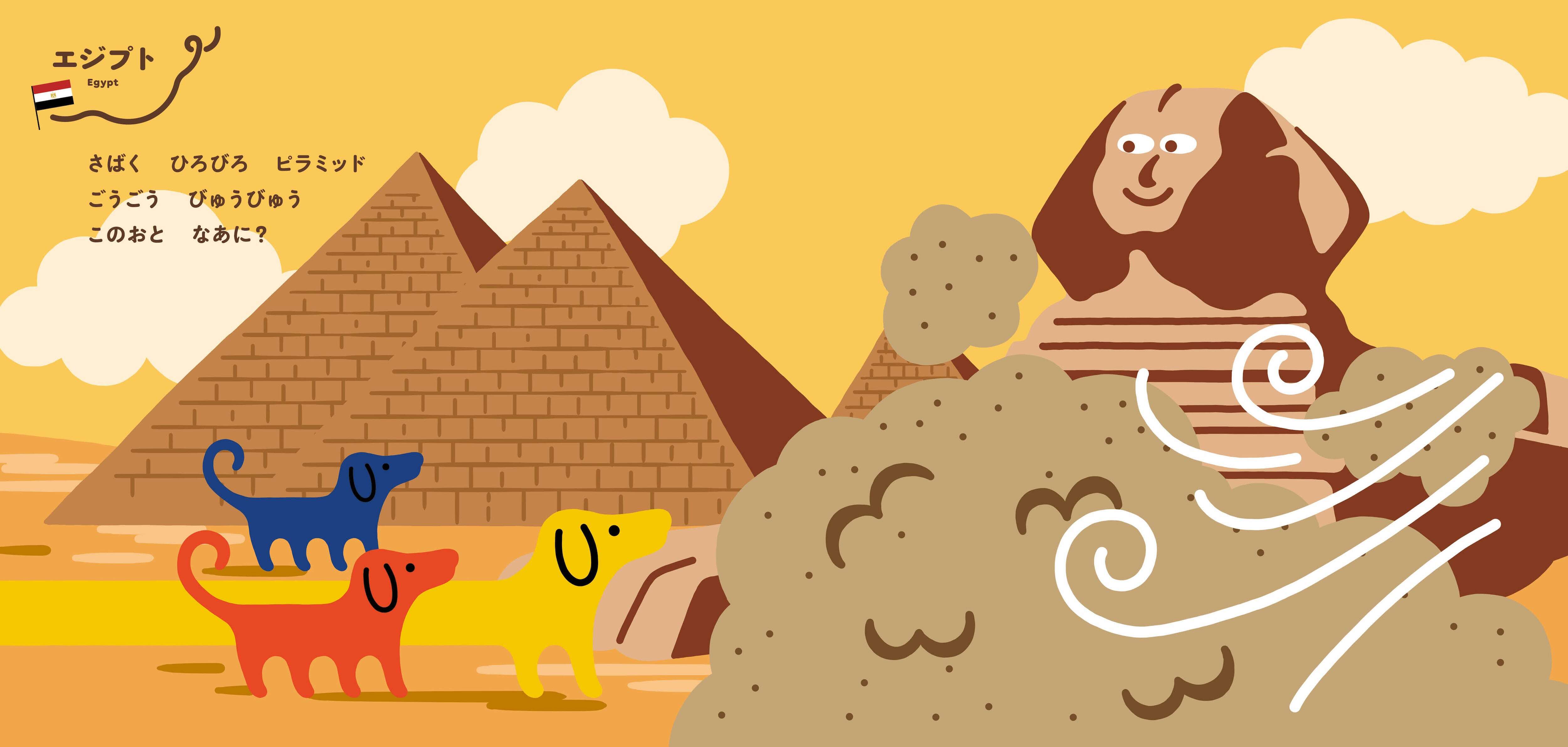 じまんのしっぽを見つけるために、友だちのイヌたちと世界の旅へ出発です!