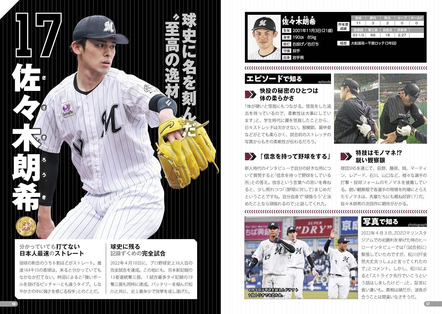 まり~んずかん2022』は、 千葉ロッテマリーンズの所属選手のみを紹介する「選手の図鑑」です。 マリーンズ一筋のベテランからルーキー、 新外国人選手や育成選手まで、 全ての選手を「人となりがわかるエピソード」を中心に、 選手ごとの個別ページで掲載。 現役選手のインタビュー記事はもちろん、 スカウトや通訳などのチームスタッフのインタビューで、 チームを詳しく知ることができます。 図鑑で選手を知ることで、 より選手を身近に感じられるため、 球場観戦のお供に最適で、 リモート応援でも試合をもっと楽しめます。
