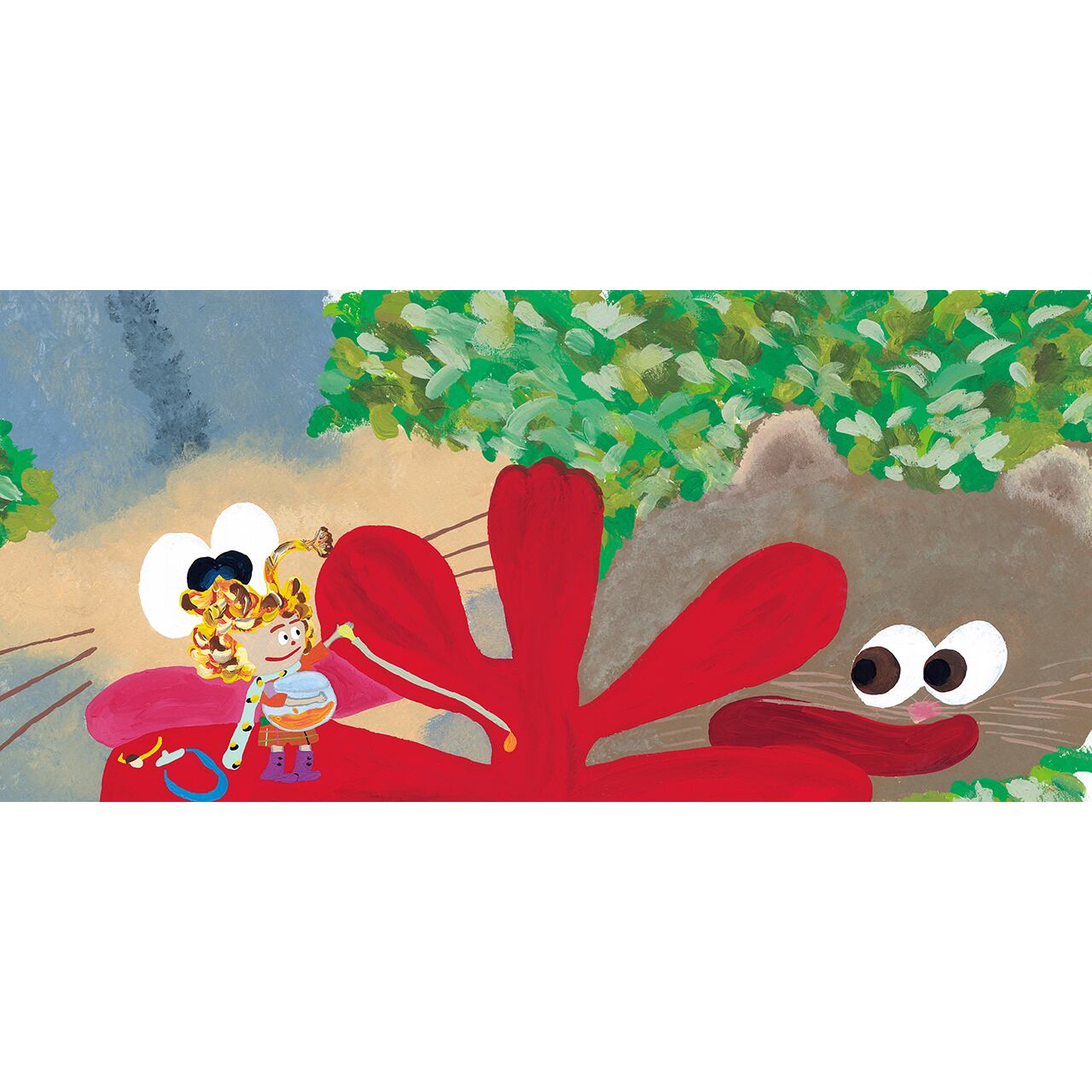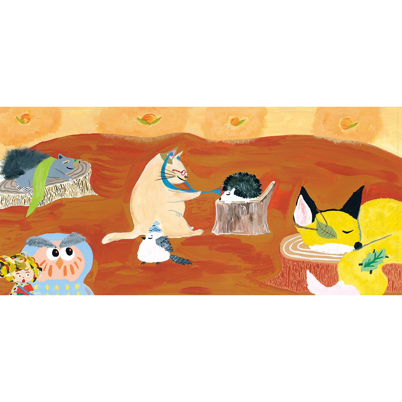 もみじの落ち葉から生まれた”こびと”リリア。サルビアの花を求めて、チョウの後をついていったところ、仲間とはぐれてしまいます。初めて訪れた花畑でサルビアの花から蜜を集めていたリリアに、タカが襲いかかります。しかし危機一髪、モモンガが現れ、リリアを助けます。モモンガの背中につかまり滑空していくリリア。モモンガが飛んでいった先は森の中。大樹の中に彼らの隠れ家がありました。そこは傷ついた動物たちが手当を受ける診療所だったのですー。